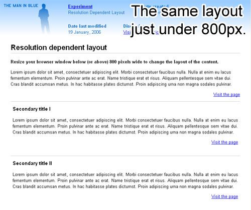 大多數(shù)流動(dòng)布局在分辨率為800×600的屏幕中看起來很大很寬--高達(dá)1280px。但是,我們可以稍稍突破一下,針對(duì)800px-1024px、1024px-1280px、1280px以上的屏幕定制略微不同的布局。同樣,也可為640px-800px、320px-640px、240px-320px、240px以下的屏幕自定義調(diào)整。