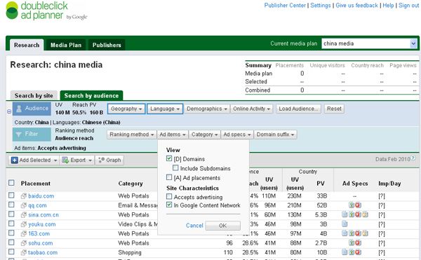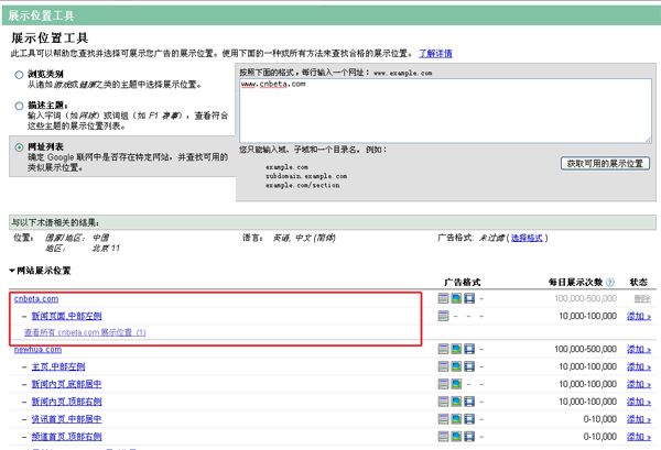 a、通過Google Ad Planaer 及Google Adwords展示位置工具(根據(jù)行業(yè)、描述、網(wǎng)址條件篩選目標站點),尋找高質量的內容網(wǎng)絡站點。Google Ad Planaer支持國家、地區(qū)、語言、行業(yè)、所支持的廣告規(guī)格等綜合條件來篩選目標站點。