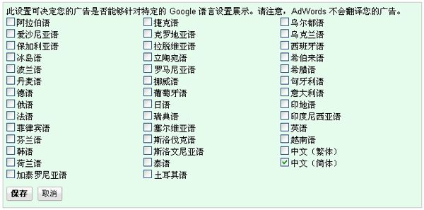 谷歌內容網(wǎng)絡語言定位設置,直接關系到你投放廣告的精確性。試想如果您在阿拉伯語系的國家投放西班牙語的廣告,或者您在巴西投放德語廣告,會有什么后果!如果你在投放簡體中文一個語系的廣告,直接選擇簡體中文語言的配置即可。 如果您在投放多語系的廣告,就需要研究當?shù)貒沂裁凑Z言是官方語言。需要注意的是:選擇語言配置后當然也要制作針對這個語言的廣告創(chuàng)意和Landing page頁面。