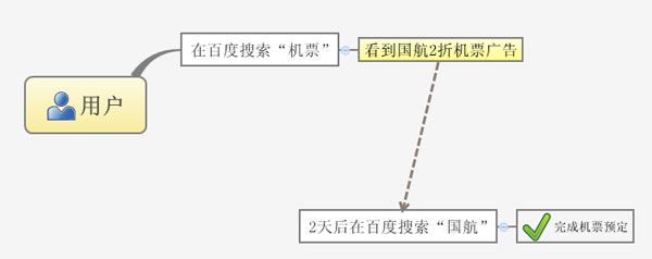 上圖中我們可以看出,國航的關(guān)鍵詞廣告”機(jī)票”及相關(guān)廣告創(chuàng)意,影響用戶去搜索”國航”的行為。這種關(guān)鍵字之間對(duì)用戶搜索行為的影響,實(shí)際也會(huì)損失許多潛在搜索流量。如果廣告主去投放某個(gè)關(guān)鍵詞,或者某組關(guān)鍵詞,也未必可以涵蓋用戶所有的搜索行為。 低覆蓋率是關(guān)鍵詞廣告最大的弊端!