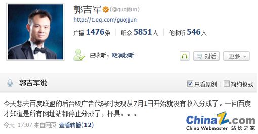 廣捷居站長郭吉軍在微博的發(fā)言(站長之家配圖)