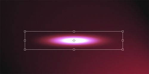 復(fù)制剛在制作的光效圖層(Ctrl+J),隱藏原始層。之后會用這層制作更多的光紋。現(xiàn)在,比例縮放(編輯》變換》縮放)(Ctrl+T)光效層使其扁平。這樣做可以控制光紋的粗細(xì)。