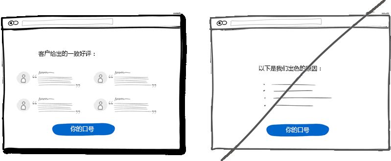 單列布局能夠讓對(duì)全局有更好的掌控。同時(shí)用戶(hù)也可以一目了然內(nèi)容。而多列而已則會(huì)有分散用戶(hù)注意力的風(fēng)險(xiǎn)使你的主旨無(wú)法很好表達(dá)。最好的做法是用一個(gè)有邏輯的敘述來(lái)引導(dǎo)用戶(hù)并且在文末給出你的操作按鈕。