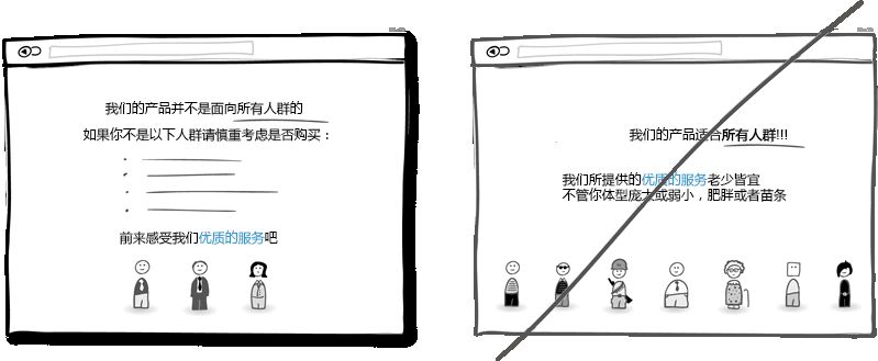 你是想把產(chǎn)品做成大眾化的呢還是有精確的適用人群?在產(chǎn)品定位上你需要更精確些。通過(guò)不斷了解目標(biāo)客戶(hù)的需求及標(biāo)準(zhǔn),你能把產(chǎn)品做得更好得到更多與客戶(hù)交流的機(jī)會(huì),并且讓客戶(hù)覺(jué)得你很專(zhuān)業(yè),在這方面是獨(dú)家提供的優(yōu)質(zhì)服務(wù)。把產(chǎn)品定位得精確的風(fēng)險(xiǎn)就是可能縮小了目標(biāo)潛在客戶(hù)的范圍,也使自身變得不那么全能。但這種做得更專(zhuān)業(yè)的精神卻反過(guò)來(lái)會(huì)贏得信任,權(quán)威。