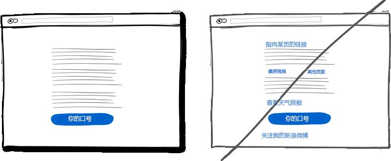 為了滿(mǎn)足各式用戶(hù)的需求,在頁(yè)面上放些鏈接鏈到這里鏈到那里是常見(jiàn)的做法。如果你的主要目的是想讓用戶(hù)點(diǎn)擊頁(yè)面最后那個(gè)下載按扭什么的話(huà),就需要三思了。因?yàn)橛脩?hù)可能點(diǎn)擊了其他鏈接離開(kāi)頁(yè)面了。所以你需要注意頁(yè)面的鏈接數(shù)量,最好將用于導(dǎo)航與用于操作的鏈接用樣式區(qū)分開(kāi)。盡量移除頁(yè)面不需要的鏈接會(huì)讓用戶(hù)點(diǎn)擊到你的功能按鈕。