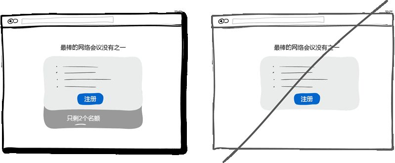 物以稀為貴。饑餓營(yíng)銷(xiāo)給出的信息就是東西不多,只剩幾件,明天再來(lái),可能沒(méi)了。你去比較一下批發(fā)與限量版的東西他們的價(jià)格差距有多大就知道了?;剡^(guò)頭來(lái)看,那些批發(fā)商或者大零售商,他們也使用饑餓營(yíng)銷(xiāo),以獲得更好的銷(xiāo)量。但在軟件行業(yè),我們經(jīng)常會(huì)忘記有饑餓營(yíng)銷(xiāo)這回事。因?yàn)閿?shù)字產(chǎn)品是可以很容易考貝復(fù)制的,不存在缺貨的情況。其實(shí),在界面設(shè)計(jì)中,也可以將其運(yùn)用起來(lái)與現(xiàn)實(shí)中的資源緊缺進(jìn)行聯(lián)系。想想一次網(wǎng)上研討會(huì)的門(mén)票,想想你一個(gè)月可以服務(wù)的人數(shù)限制,這些信息都可以告知用戶(hù)是有限的。