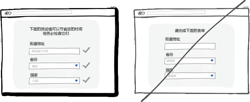 適當(dāng)?shù)哪J(rèn)值和預(yù)先填充好的表單字段可以大量減少用戶(hù)的工作量。在節(jié)省用戶(hù)寶貴的時(shí)間上面,這是種非常常見(jiàn)的做法,可以幫助用戶(hù)快速填完表單或者注冊(cè)信息。