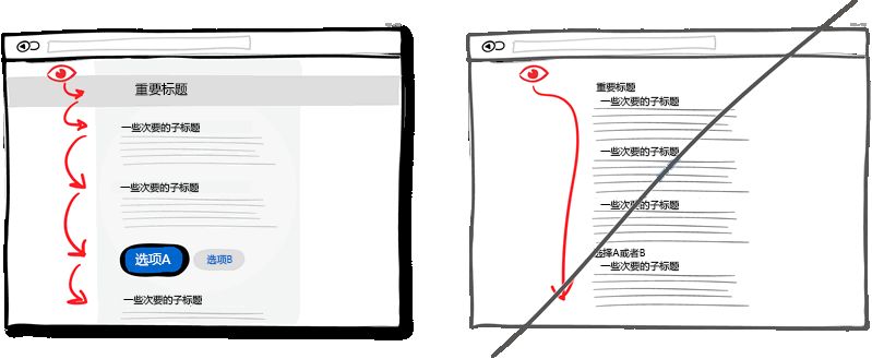 具有層次的設(shè)計(jì)可以將界面上重要的部分與不次要部分區(qū)分開(kāi)來(lái)。要讓界面層次分明,可以在這些方面做文章:對(duì)齊方式,間距,顏色,縮進(jìn),字體大小,元素尺寸等。當(dāng)所有這些調(diào)整運(yùn)用得適當(dāng)時(shí),可以提高整個(gè)界面的可讀性。相比在一個(gè)很直白的界面上用戶(hù)一眼就可以從上瞟到底的設(shè)計(jì),這樣分明的設(shè)計(jì)也可以讓用戶(hù)放慢速度來(lái)慢慢閱讀。這樣也使界面更有特色一些。就好比一次旅行,你可以乘坐高鐵快速到達(dá)景區(qū)(從頁(yè)面頂部瞟到底部),但你也可以慢行以欣賞沿途風(fēng)光。所以層次分明的設(shè)計(jì)讓眼睛有可以停留的地方,而不是對(duì)著空白單調(diào)的一個(gè)屏幕。